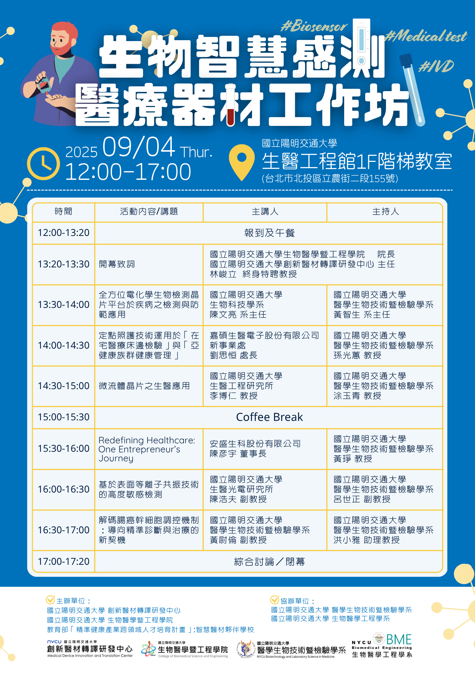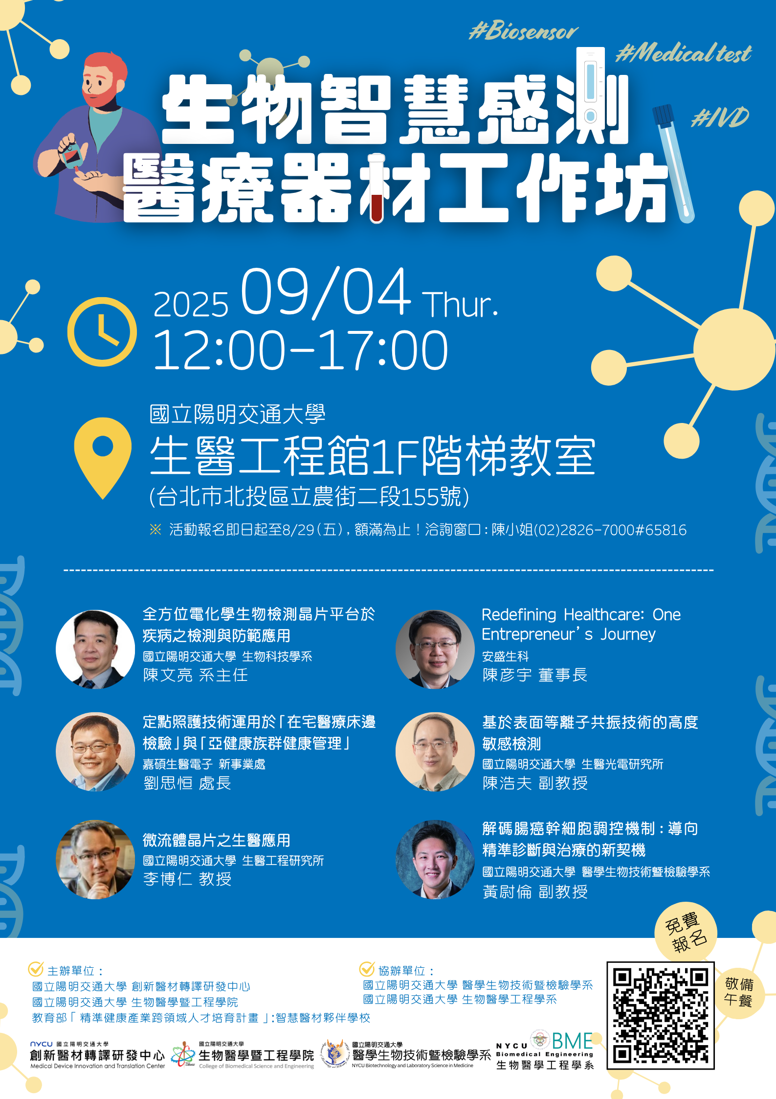 Venue: 1F Lecture Hall, Biomedical Engineering Building, National Yang Ming Chiao Tung University