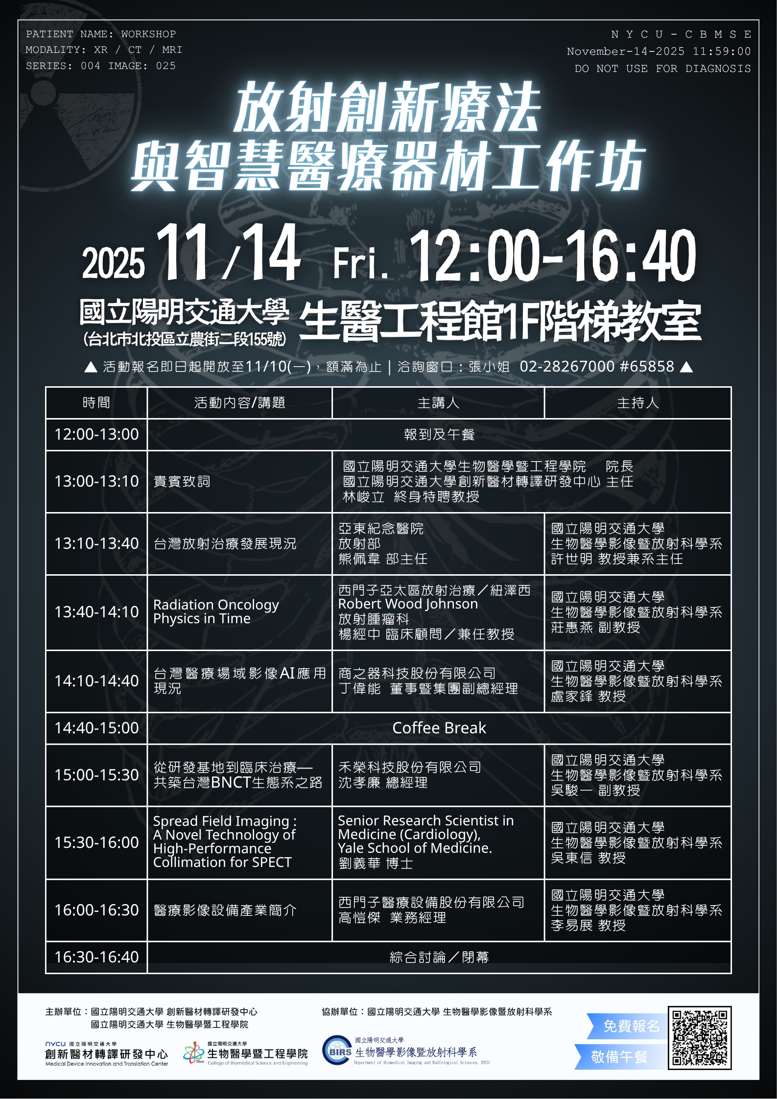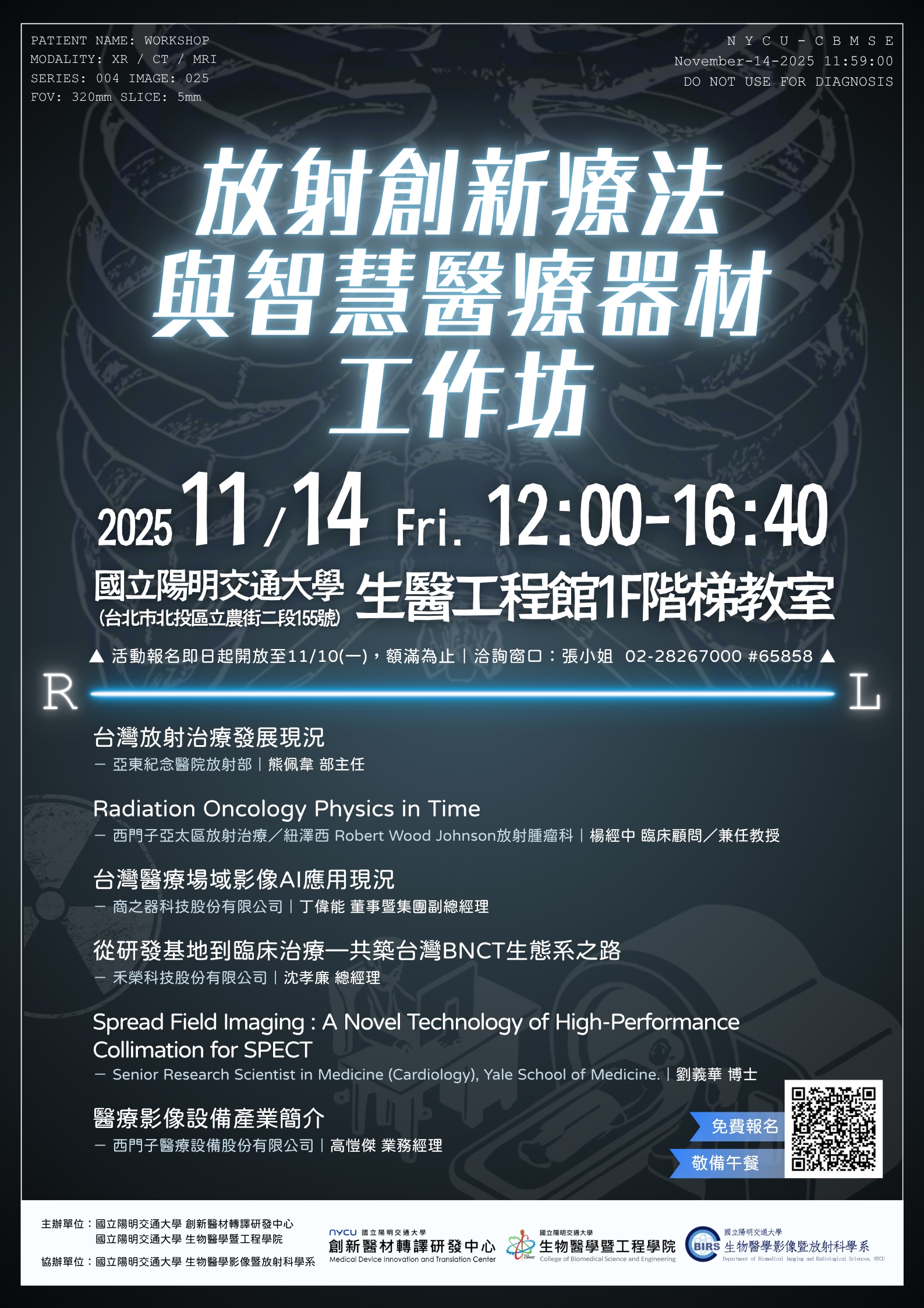 Venue: 1F Lecture Hall, Biomedical Engineering Building, National Yang Ming Chiao Tung University