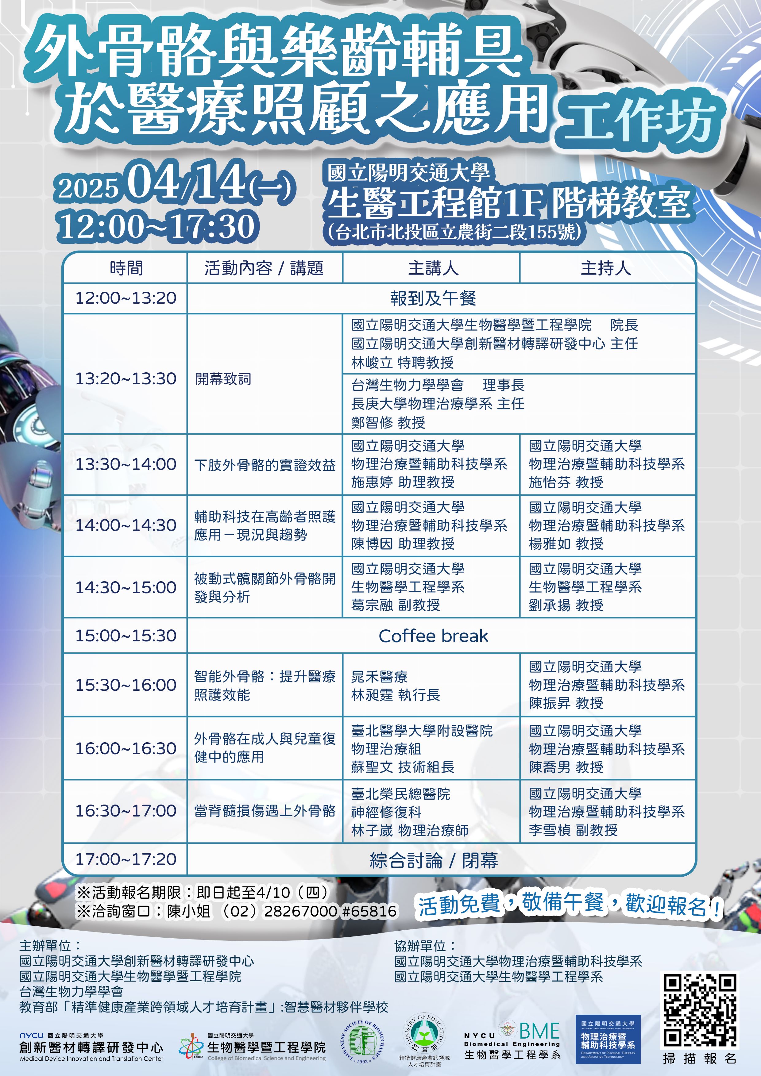 Venue: 1F Lecture Hall, Biomedical Engineering Building, National Yang Ming Chiao Tung University
